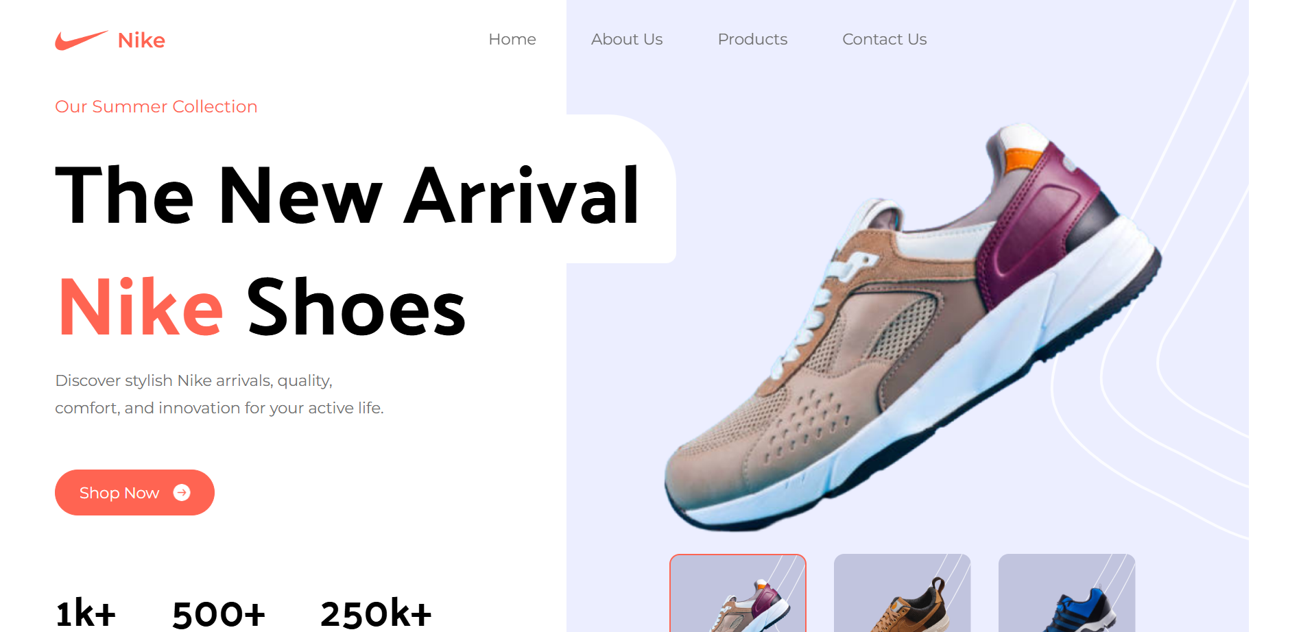 Nike Shoes – A React & Tailwind Project. A sleek and modern e-commerce landing page for Nike shoes.